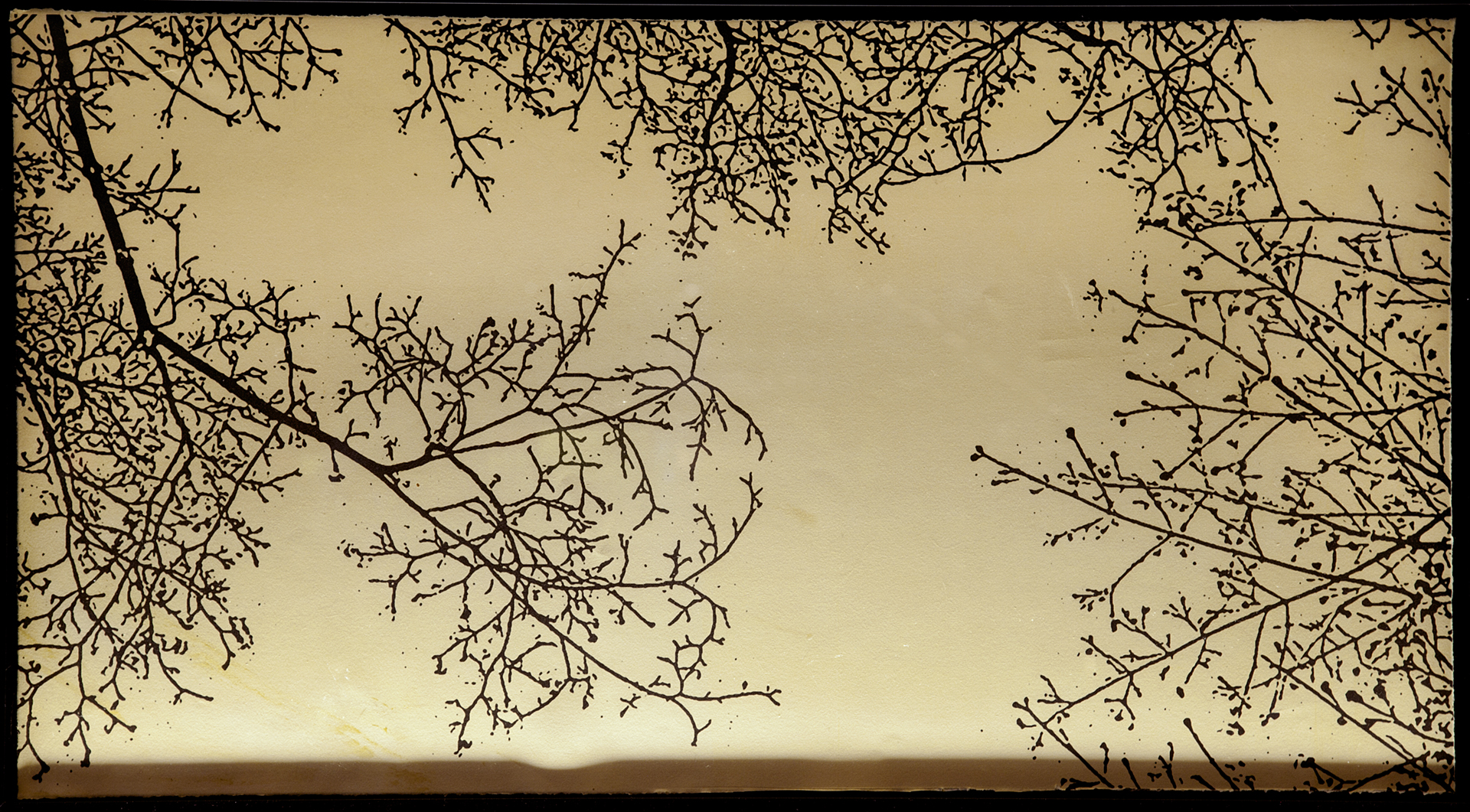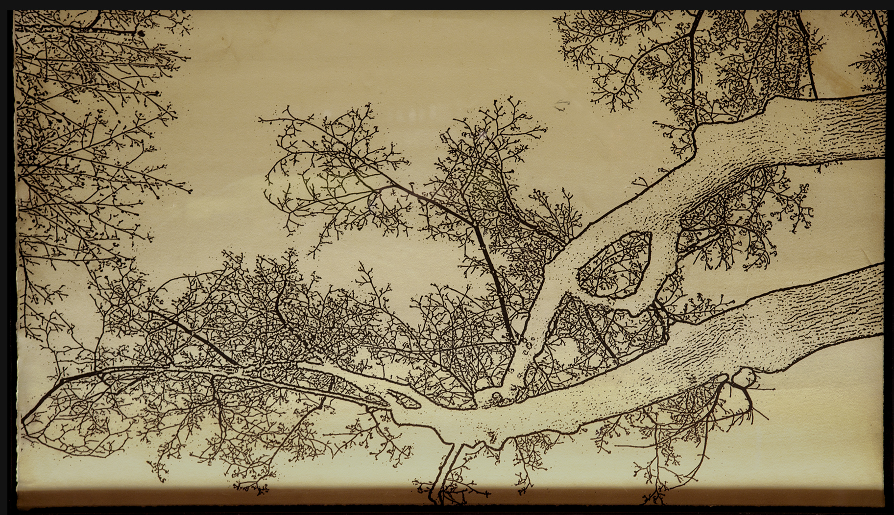 photographs as line drawings, printed on heavyweight, tea-stained watercolor paper. 2 x 5 feet each.